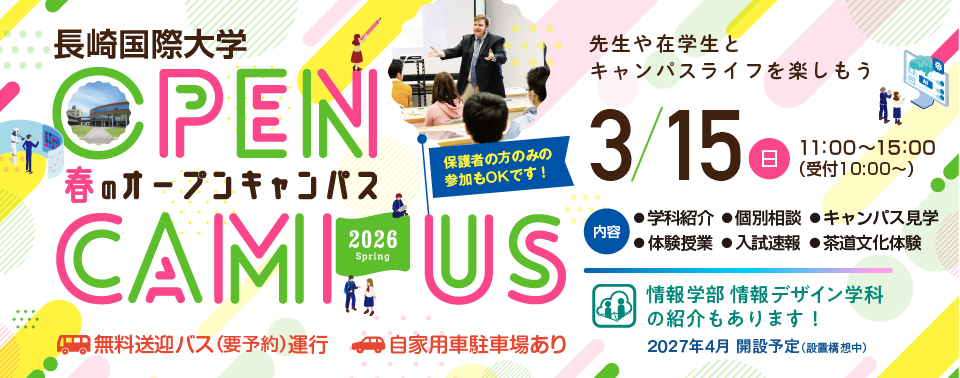 - 2025.09.22長崎国際大学 新学部・新学科の名称決定に関するお知らせ「情報学部 情報デザイン学科」2027年4月開設予定