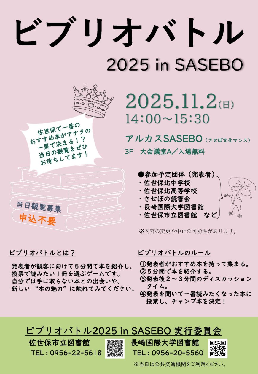 佐世保市立図書館と共催する「ビブリオバトル2025 in SASEBO」を開催します。