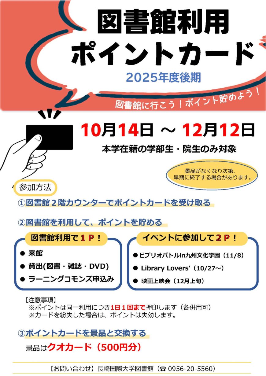 2025年度後期の「図書館利用ポイントカード」が始まりました。