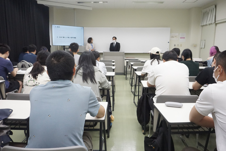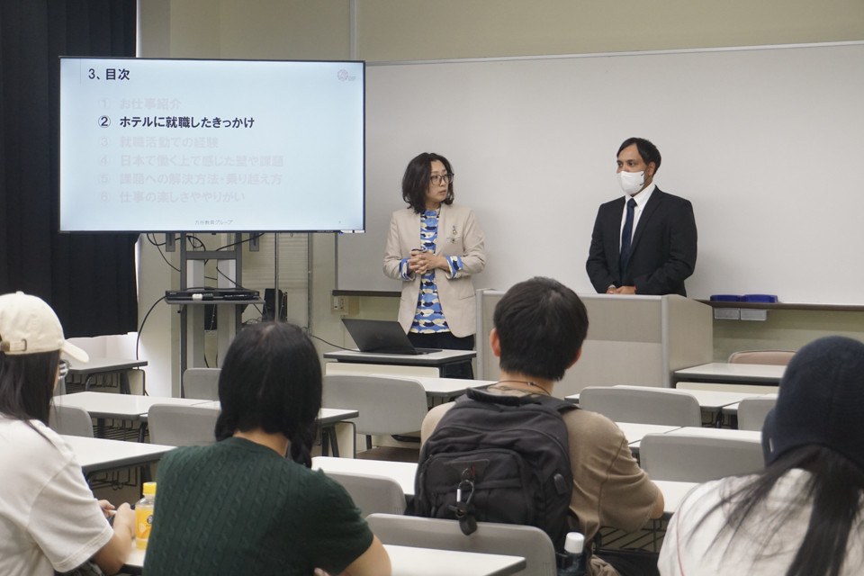 9月24日、本学を卒業後、Q-bicホテルズ株式会社様・協和機工株式会社様に就職し活躍されている先輩を招き、日本での就職を希望する外国人留学生を対象に『留学生OB講話&企業説明会』を開催しました。