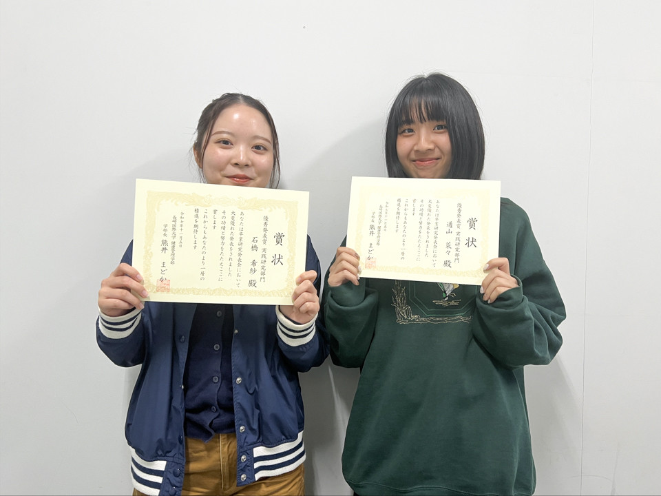 優れた研究発表に贈られる優秀発表賞は、演題数に合わせ、実践研究部門から2演題、基礎研究部門から1演題を教員による審査で選びました。その結果、各部門で以下の発表が表彰されました。