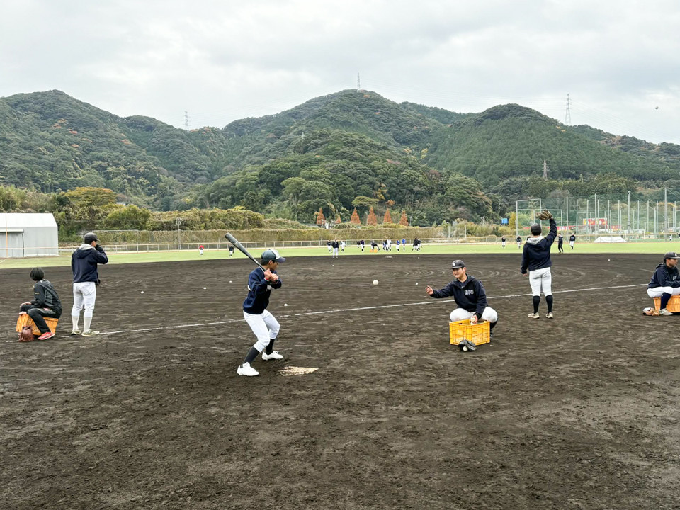 本イベントは国際観光学科スポーツツーリズムコースの学生が中心となり運営しています。目玉企画の「逃走中みたいな鬼ごっこ」では、雨が上がったタイミングで駅伝部や野球部などの脚自慢がハンターとなり子供たちを全力で追いかけ、大変盛り上がりました。また、佐世保市教育委員会と連携し部活動地域展開実証事業として「大学生による中学生への野球教室」も同時開催し、高評価を得ました。