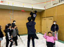 12月13日(土)、「スポーツフェスタ2025」を開催しました。当日は曇りの予報でしたが、準備を始めた途端に雨が降り出し、予定の変更を余儀なくされました。しかし、実行委員メンバーの判断と学生の迅速な行動により、開始前には見事に準備が整いました。雨模様ではありましたが、参加者は佐世保市内の子ども達を中心に約300名、来場者全体で400名を超える、熱いイベントになりました。