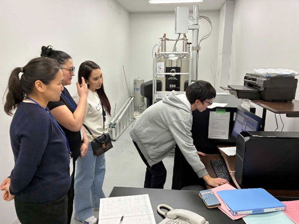 宇都拓洋教授および北川翔大助教の指導のもと、薬品資源学研究室で実施されている研究内容を中心に、各種クロマトグラフィーを用いた薬用植物由来活性成分の分離・精製、核磁気共鳴装置(NMR)および質量分析装置による天然化合物の構造決定、各種生物活性評価、作用機序解析などの研究活動を見学しました。また、附属薬用植物園を訪問し、日本の薬学教育や研究で活用されている多様な薬用植物を観察しました。植物の特徴や利用方法について意見交換が行われ、モンゴルの薬用植物との比較を通じた活発な議論が見られました。