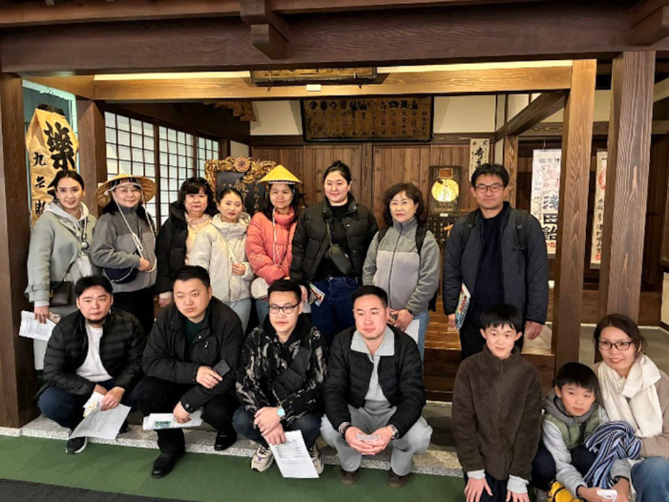 最終日は中冨記念くすり博物館を訪問し、日本における医薬品や漢方の歴史、薬と社会の関わりについて学びました。生薬標本や伝統的な薬づくりに用いられてきた器具類の見学を通じて、漢方が日本の文化や社会と密接に関わりながら発展してきた過程について理解を深めました。その後、日本の伝統文化や信仰への理解を深めることを目的として太宰府天満宮を参拝し、参拝後には名物の梅ヶ枝餅を味わいました。すべての交流活動を計画どおり終了し、招へい者は福岡空港から帰国の途に就きました。