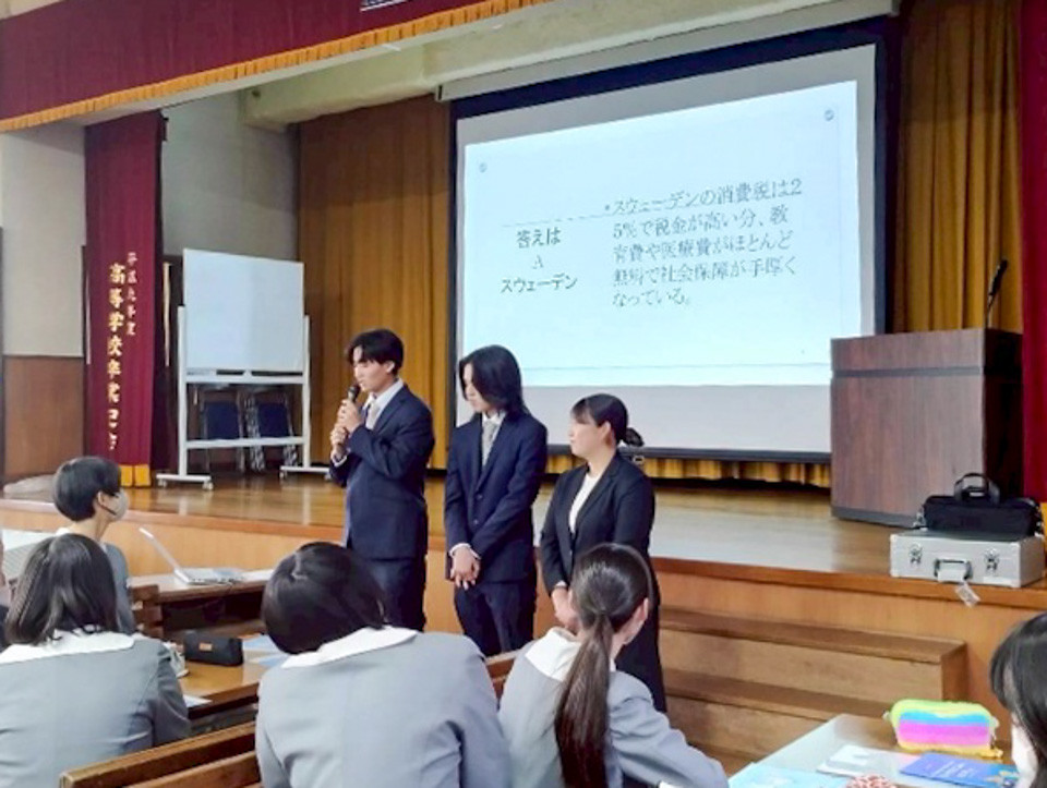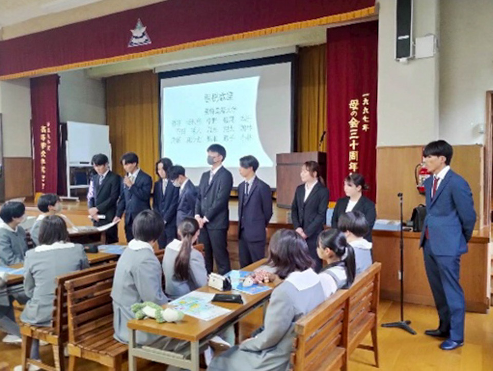 2月5日(木)、聖和女学院中学校において、浦郷ゼミと佐世保法人会様と共同で租税教室を実施しました。本年度第3回目となる租税教室は、浦郷ゼミ2年生9名の学生が担当しました。