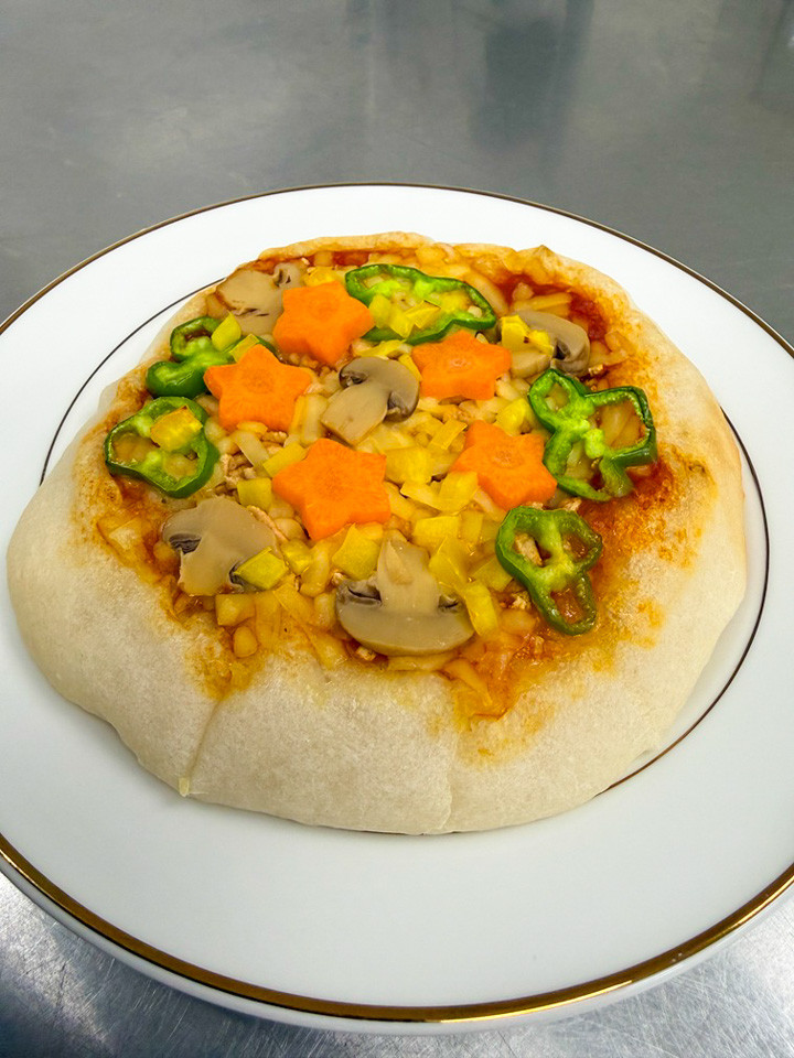 ピザ生地の発酵や具材の重ね方、焼き具合を何度も試作を繰り返して、低たんぱく質の素材に合わせた適切なレシピを作り上げました。