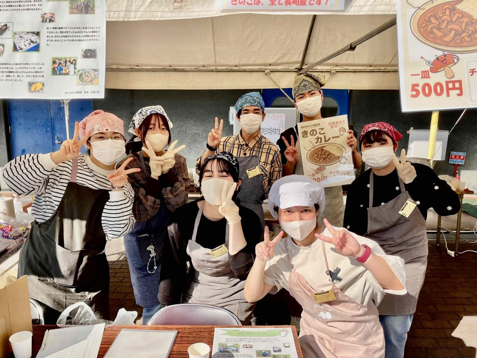 【学生生活】「NIUきのこ倶楽部」 開国祭:(株)雲仙きのこ本補様ご協賛「きのこカレー」完売しました