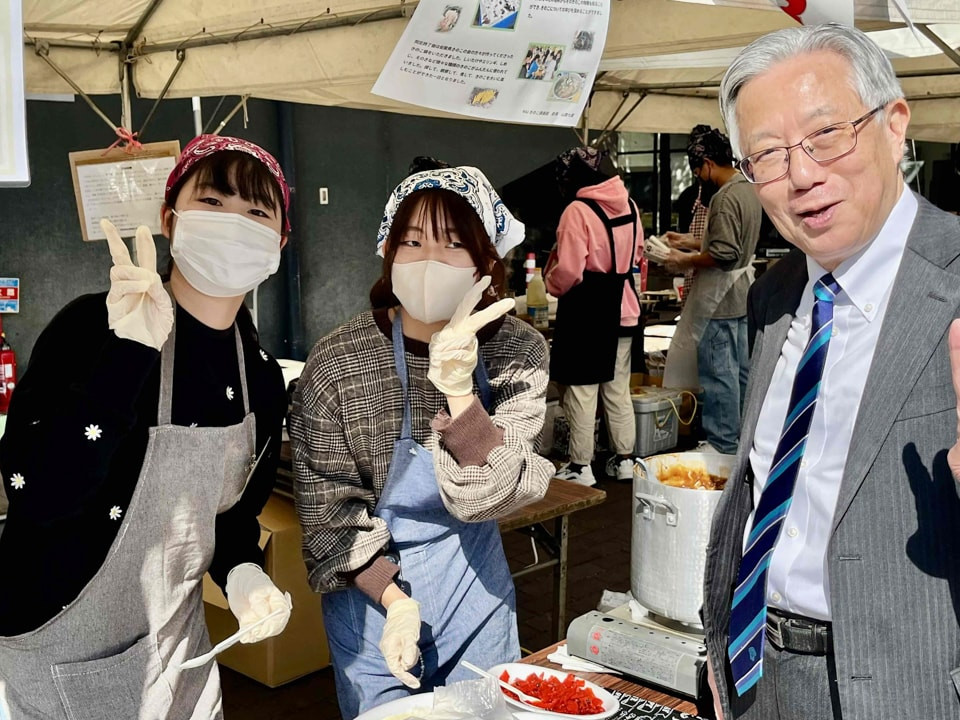 11月8日(土)及び9日(日)に開催された本学学園祭「開国祭」のNIUきのこ倶楽部:模擬店において、(株)雲仙きのこ本舗様にご協賛いただいた「きのこカレー」を販売しました。3種の摘みたてキノコ(舞茸、えのき茸、エリンギ)をふんだんに使用した蜂蜜入りこだわりカレー(とろけるチーズのトッピング可)であり、多くのお客様から高いご評価をいただき、大好評のうちに180食を完売することができました。今年の開国祭では、薬学科と栄養学科の1年生と3年生が中心となり、同学科の教員(林先生、小田先生、倉岡先生など)の多大なご協力もいただきました。この度の貴重な経験と収益は、今後のサークル活動に有意義に供させていただきます。