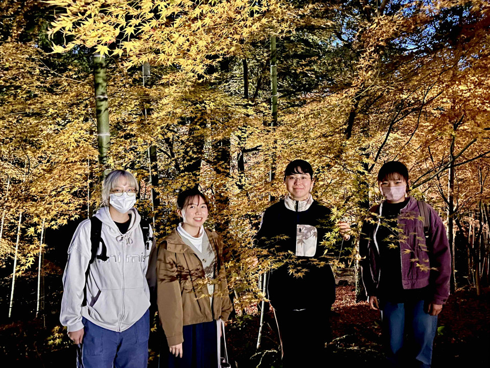 11月29日(土)、NIUきのこ倶楽部に所属する1年生および3年生12名が、「株式会社・雲仙きのこ本舗」様の食用きのこ栽培工場(雲仙市愛野町)を見学研修しました。併設レストラン「雲か山か」において”きのこ料理”のランチを戴いた後、工場センター長様よりきのこ人工栽培における生育環境(温度、湿度、紫外線等)の重要性と衛生管理等についてお話し頂き、食の安全性について考える良い機会を提供いただきました。(写真①~④)。その後、仁田峠からロープウェイにて壮大な景色を満喫すると共に、妙見岳山頂付近において約1.5kmの山道を散策しました(写真⑤~⑧)。下山後、紅葉の名所「三十路苑(雲仙市小浜町)」に移動し、ライトアップされた見事な紅葉を鑑賞することができました(写真⑨~⑭)。